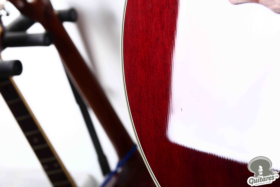 Гитара изготовлена для внутрияпонского рынка в 2000 году. Теплый глубокий звук. Большой корпус. Удобный гриф. Изящные инкрустации шпоном. Яркий насыщенный цвет!